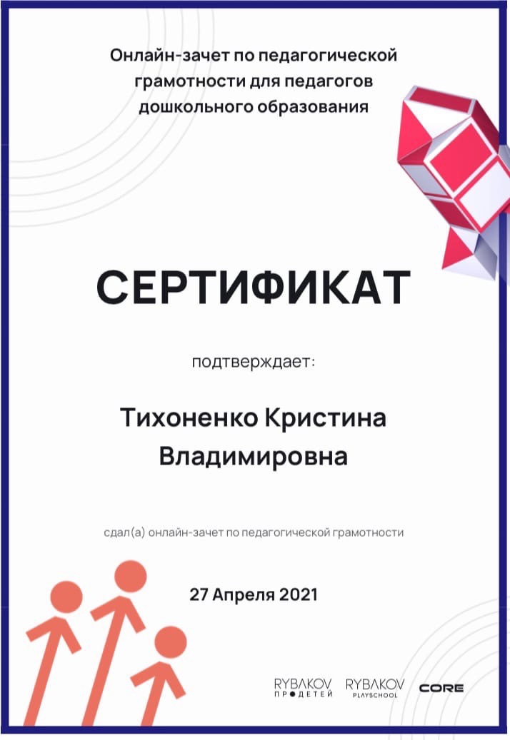 Сертификат о прохождении онлайн -зачета по педагогической грамотности